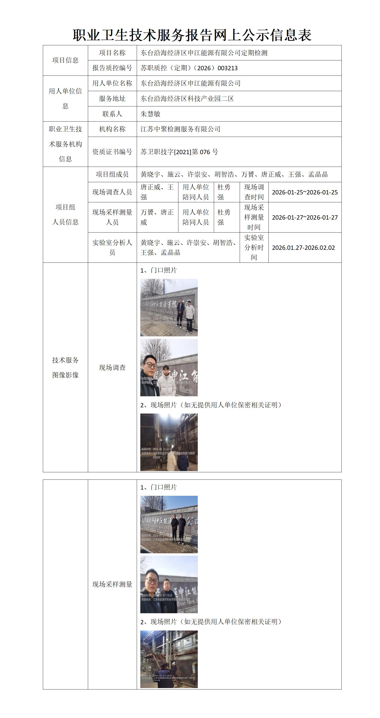 东台沿海经济区申江能源有限公司职业卫生技术服务报告网上公示信息表