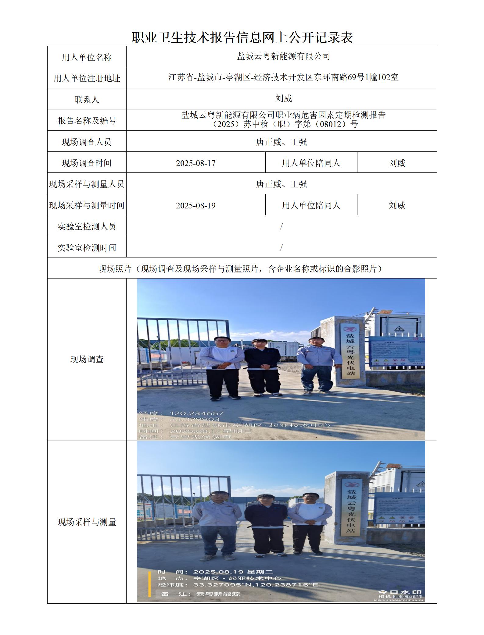 盐城云粤新能源有限公司职业卫生技术报告信息网上公开记录表