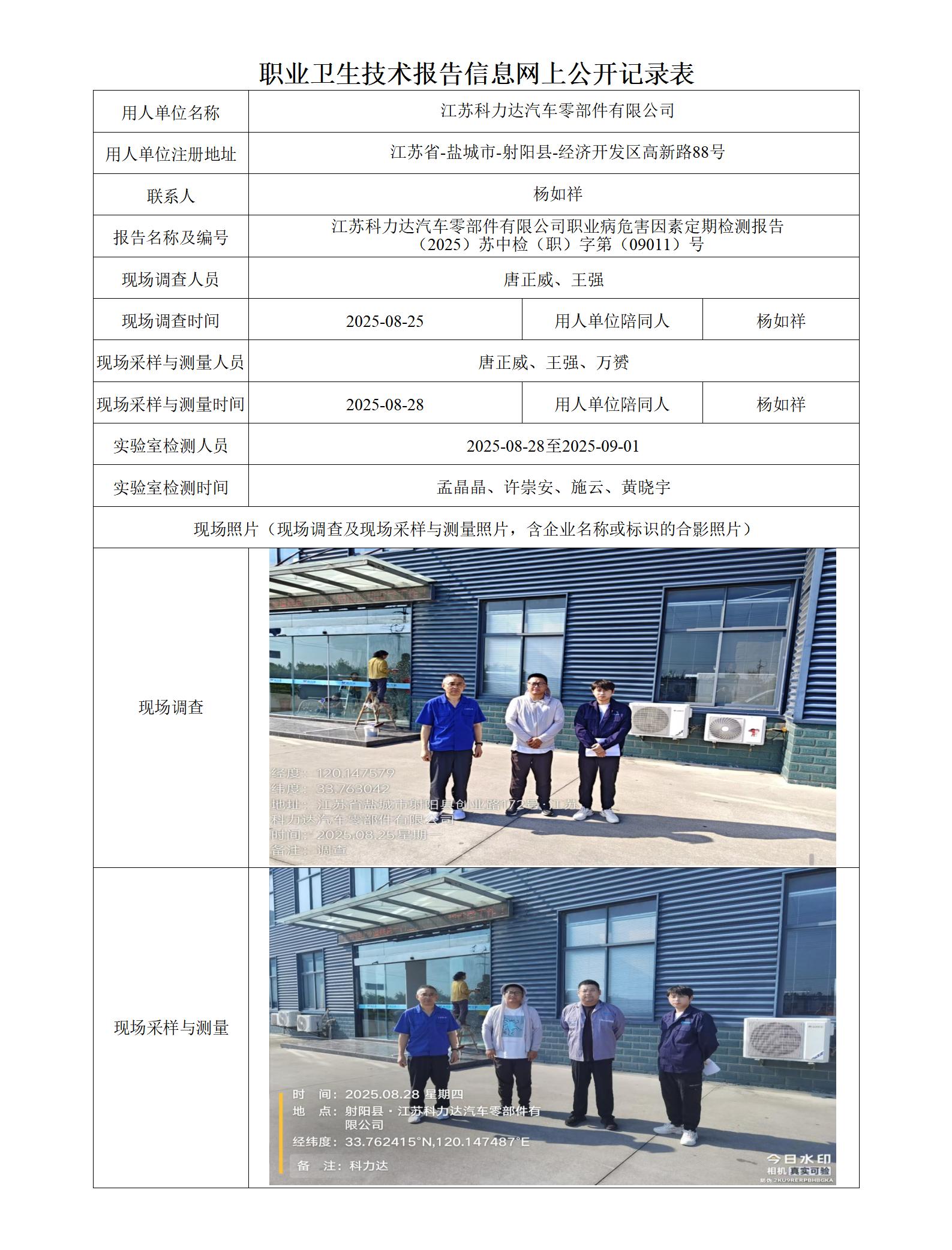 江苏科力达汽车零部件有限公司职业卫生技术报告信息网上公开记录表