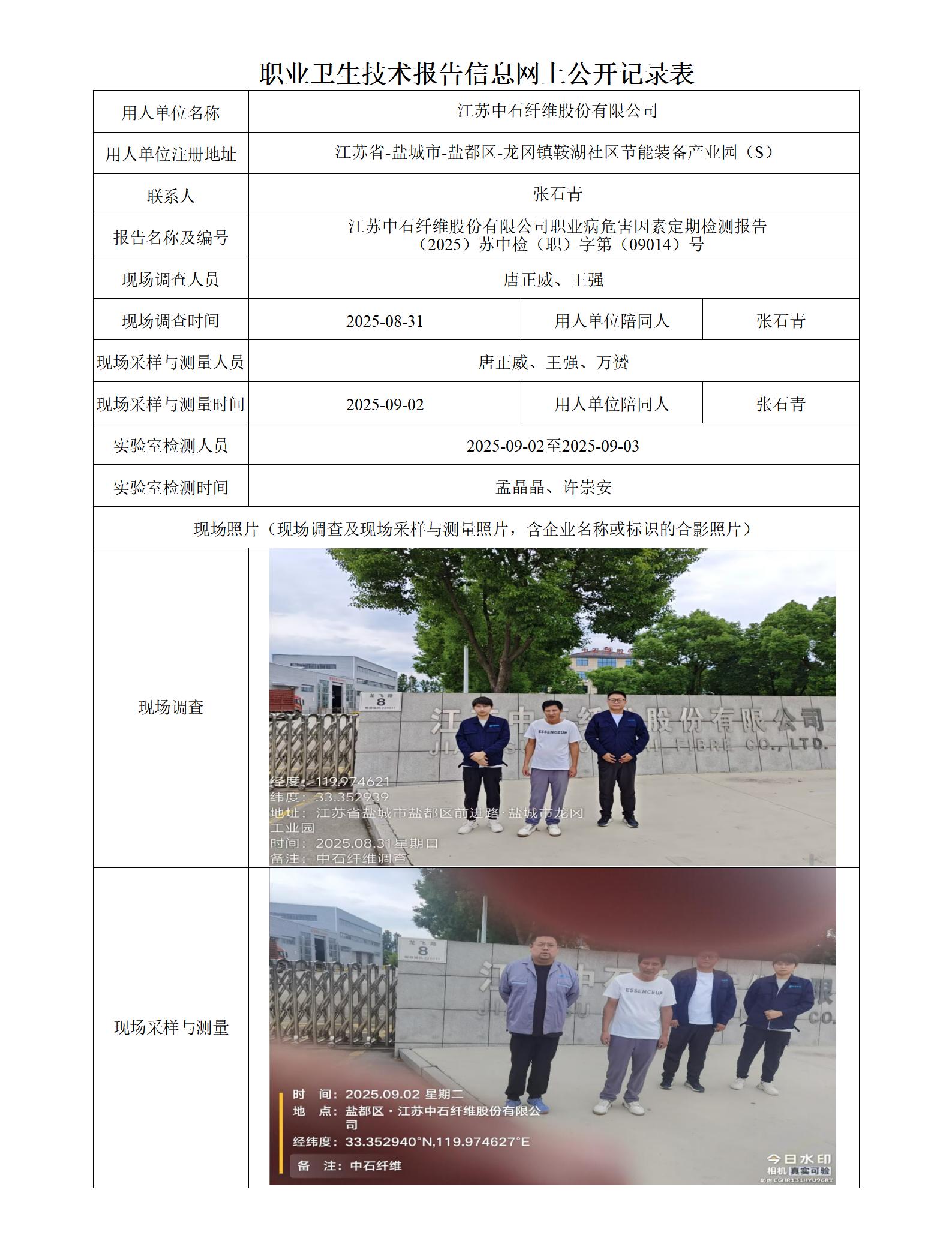 江苏中石纤维股份有限公司职业卫生技术报告信息网上公开记录表