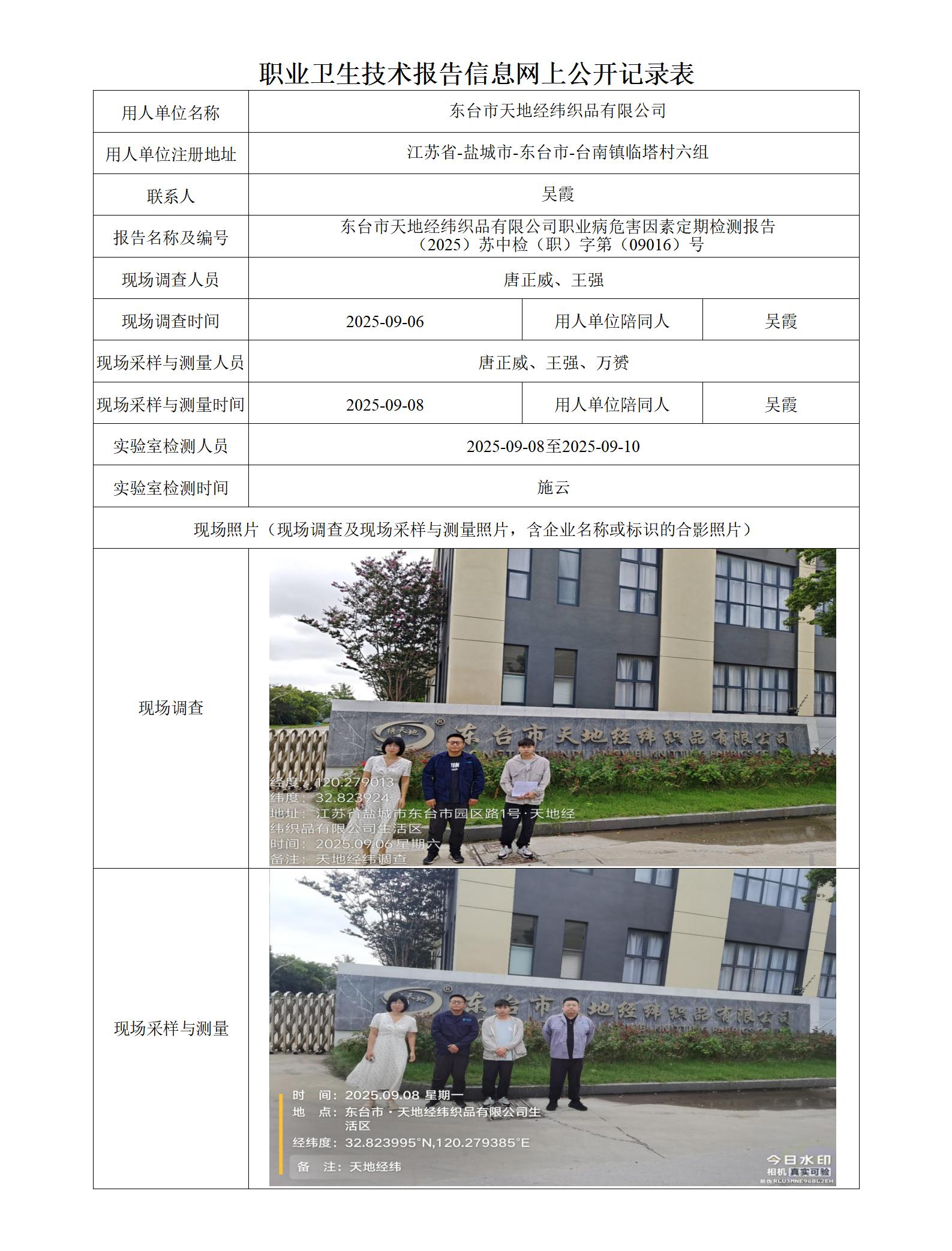 东台天地经纬织品有限公司职业卫生技术报告信息网上公开记录表