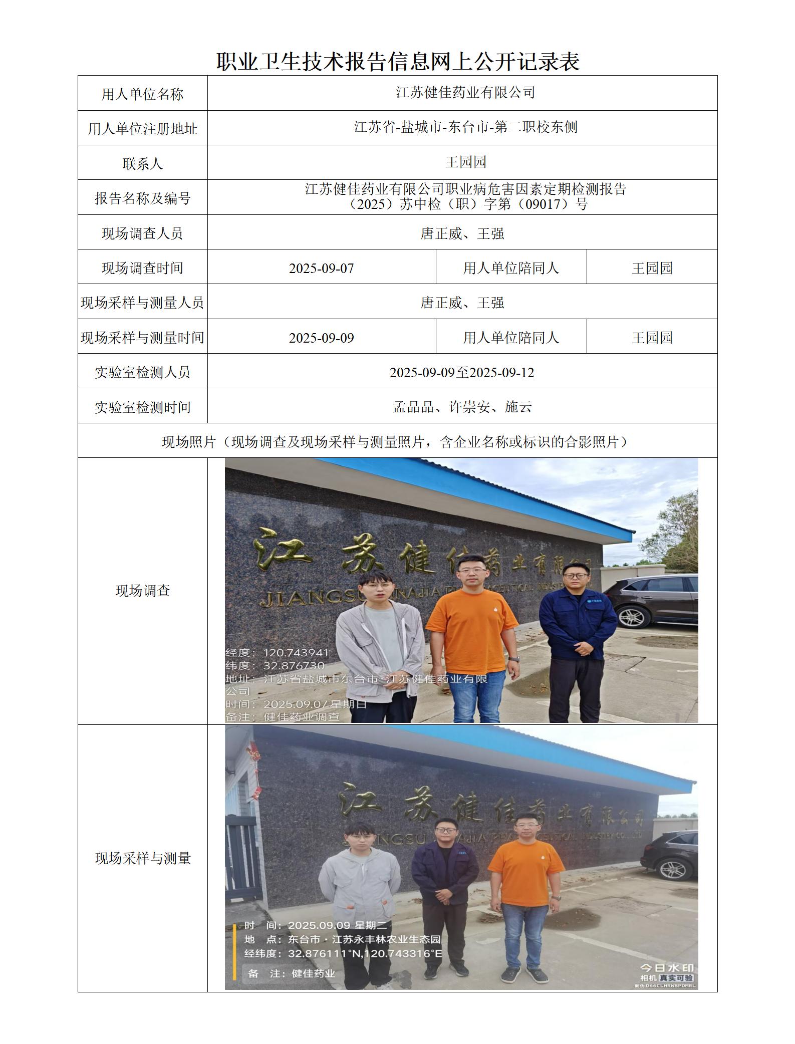 江苏健佳药业有限公司职业卫生技术报告信息网上公开记录表