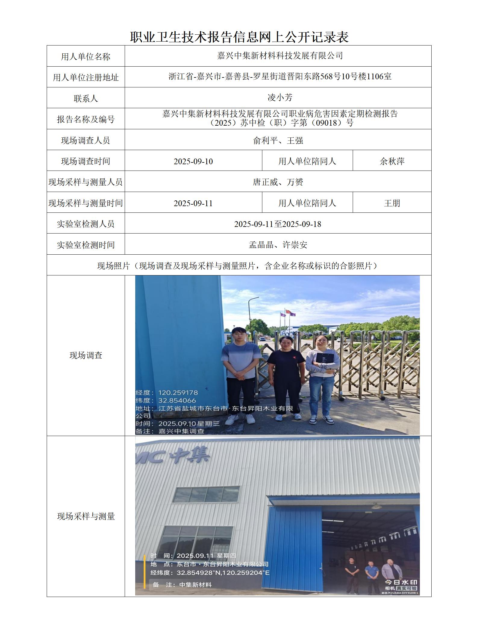 嘉兴中集新材料科技发展有限公司职业卫生技术报告信息网上公开记录表
