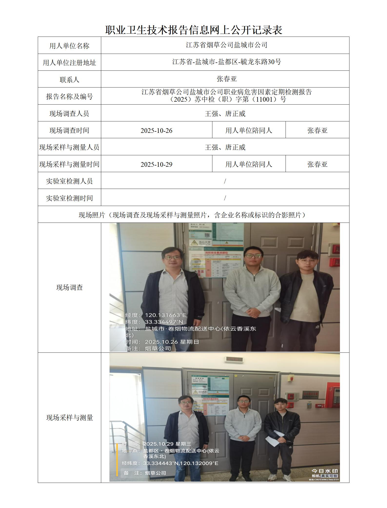 江苏省烟草公司盐城市公司职业卫生技术报告信息网上公开记录表