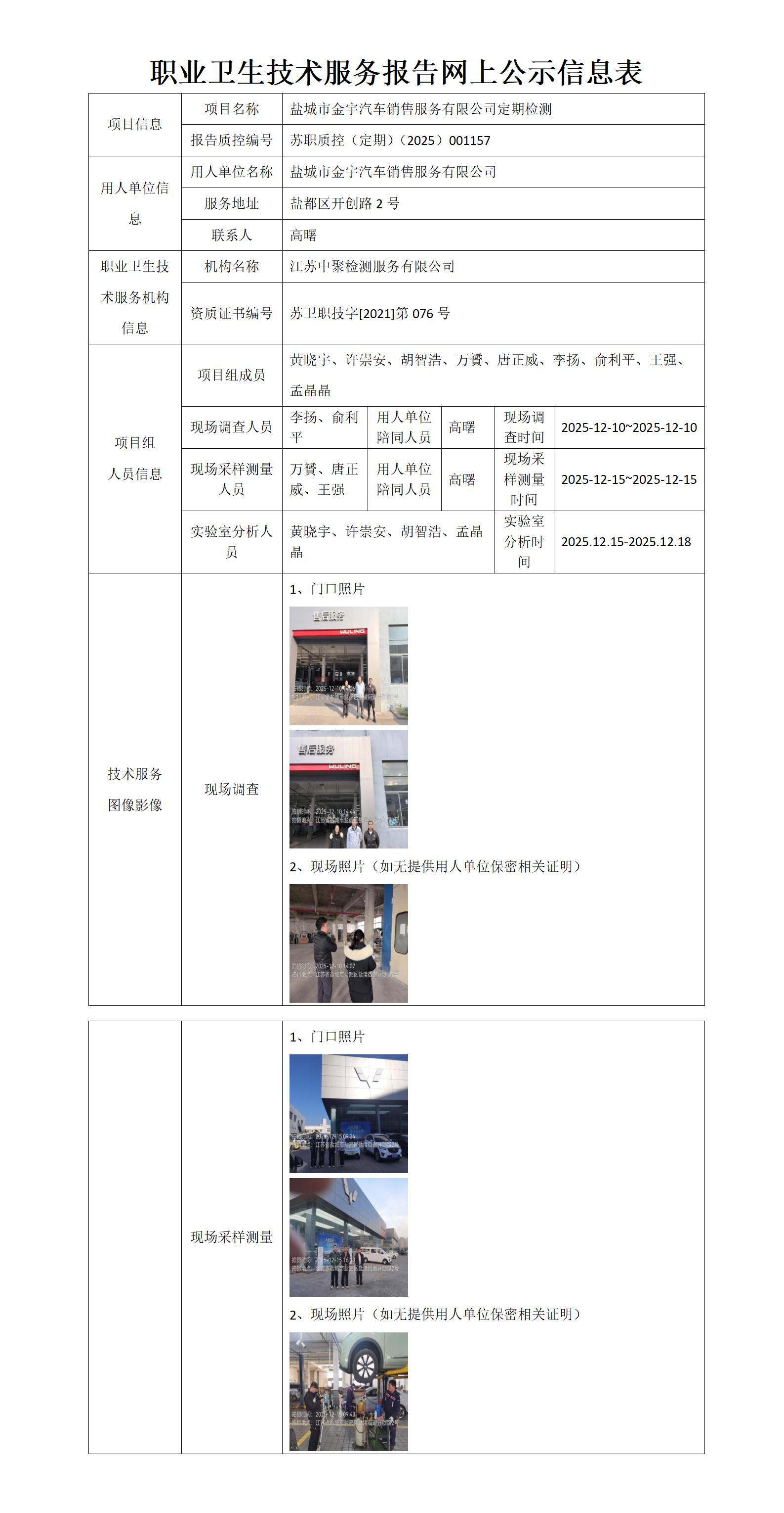 盐城市金宇汽车销售服务有限公司定期检测公示信息表