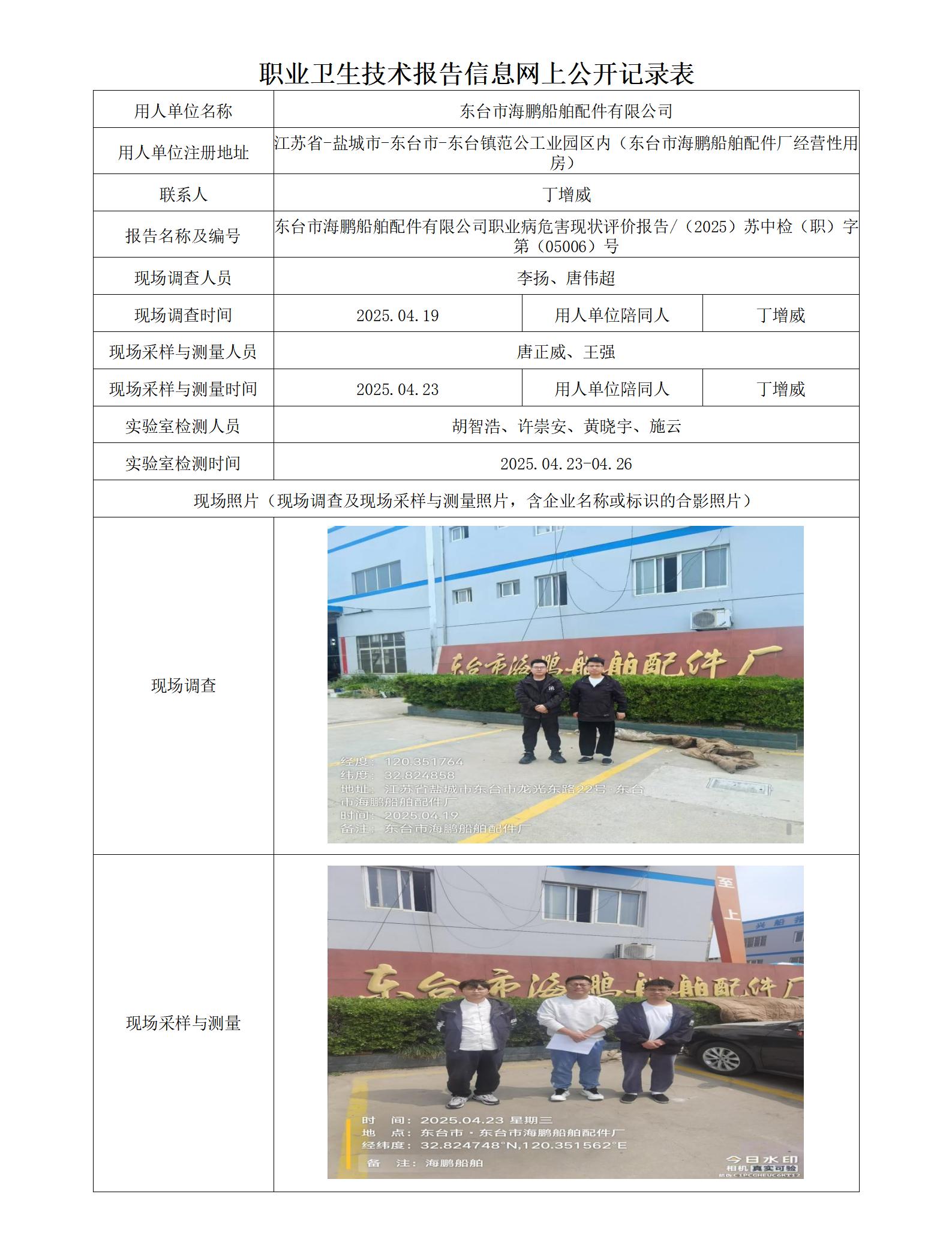 东台市海鹏船舶配件职业卫生技术报告信息网上公开记录表