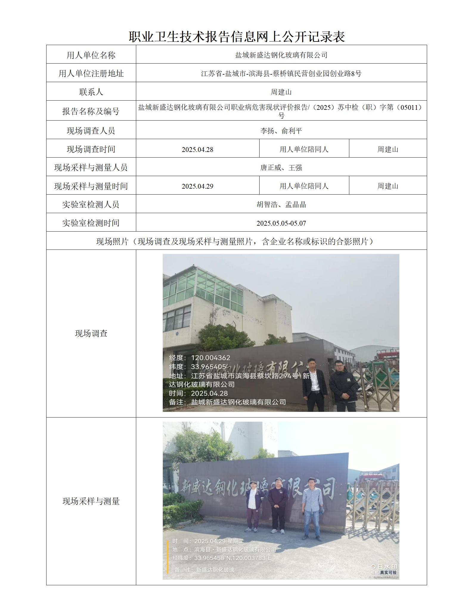 盐城新盛达钢化玻璃有限公司职业卫生技术报告信息网上公开记录表