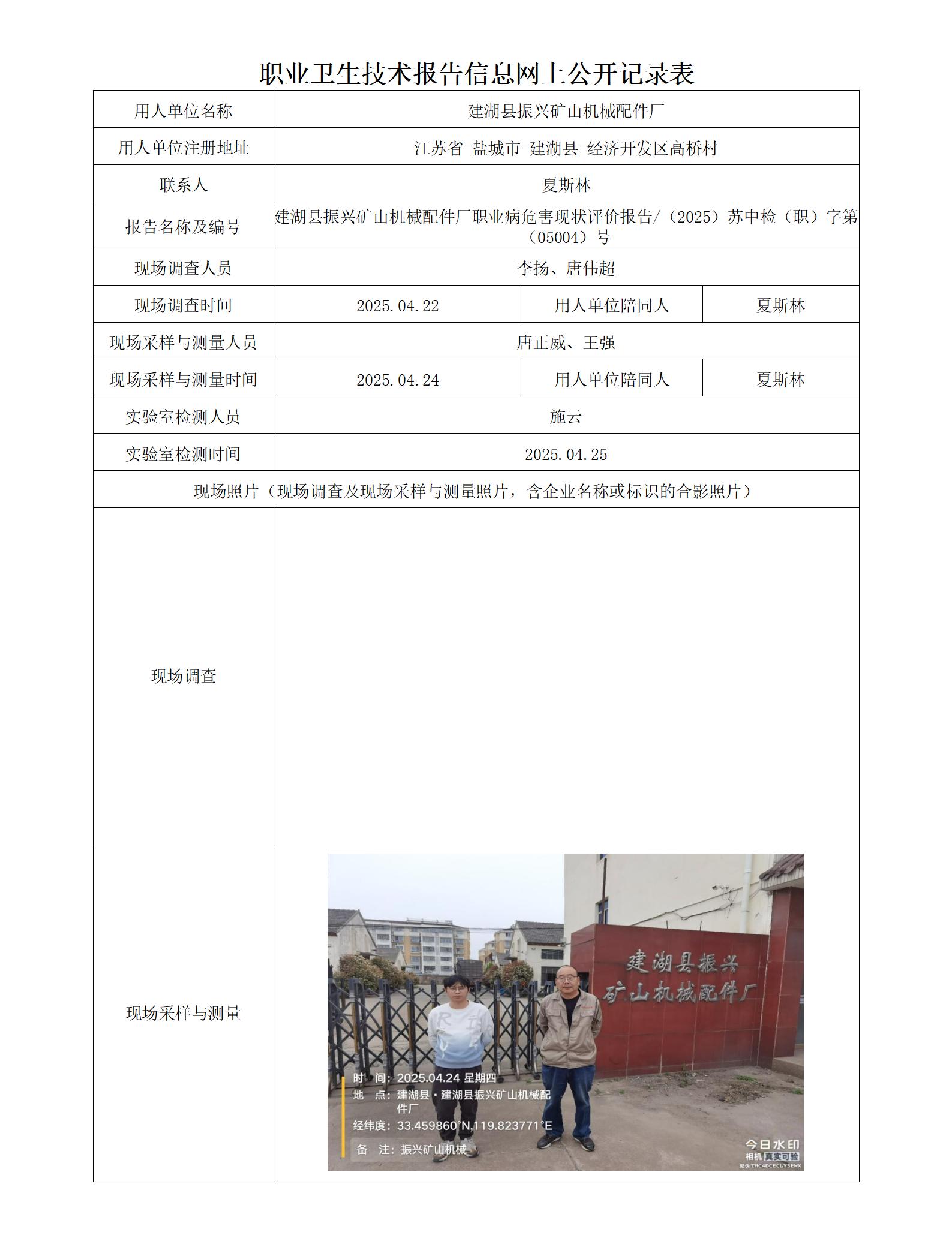 建湖县振兴矿山机械配件厂职业卫生技术报告信息网上公开记录表