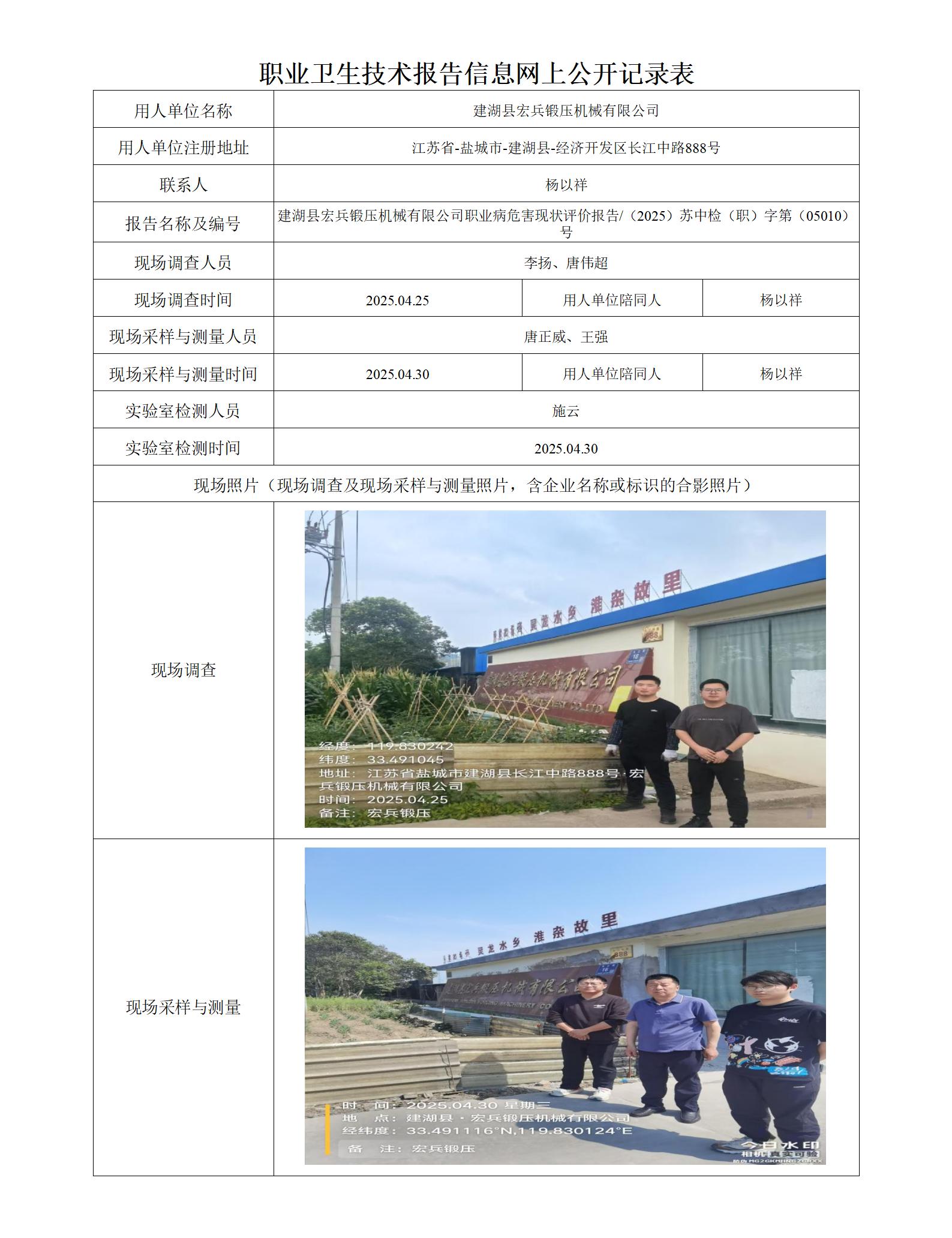 建湖县宏兵锻压机械职业卫生技术报告信息网上公开记录表