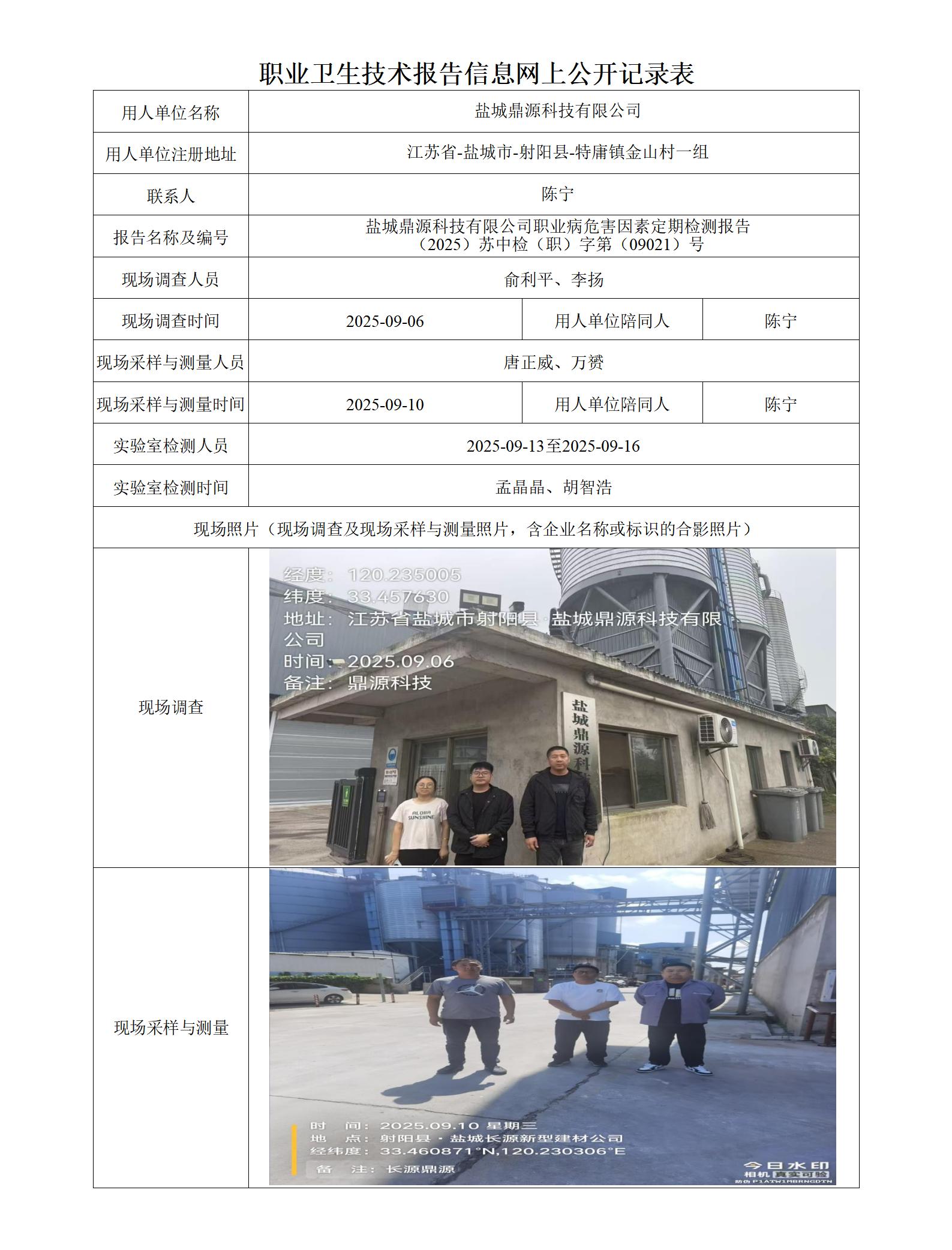 盐城鼎源科技有限公司职业卫生技术报告信息网上公开记录表
