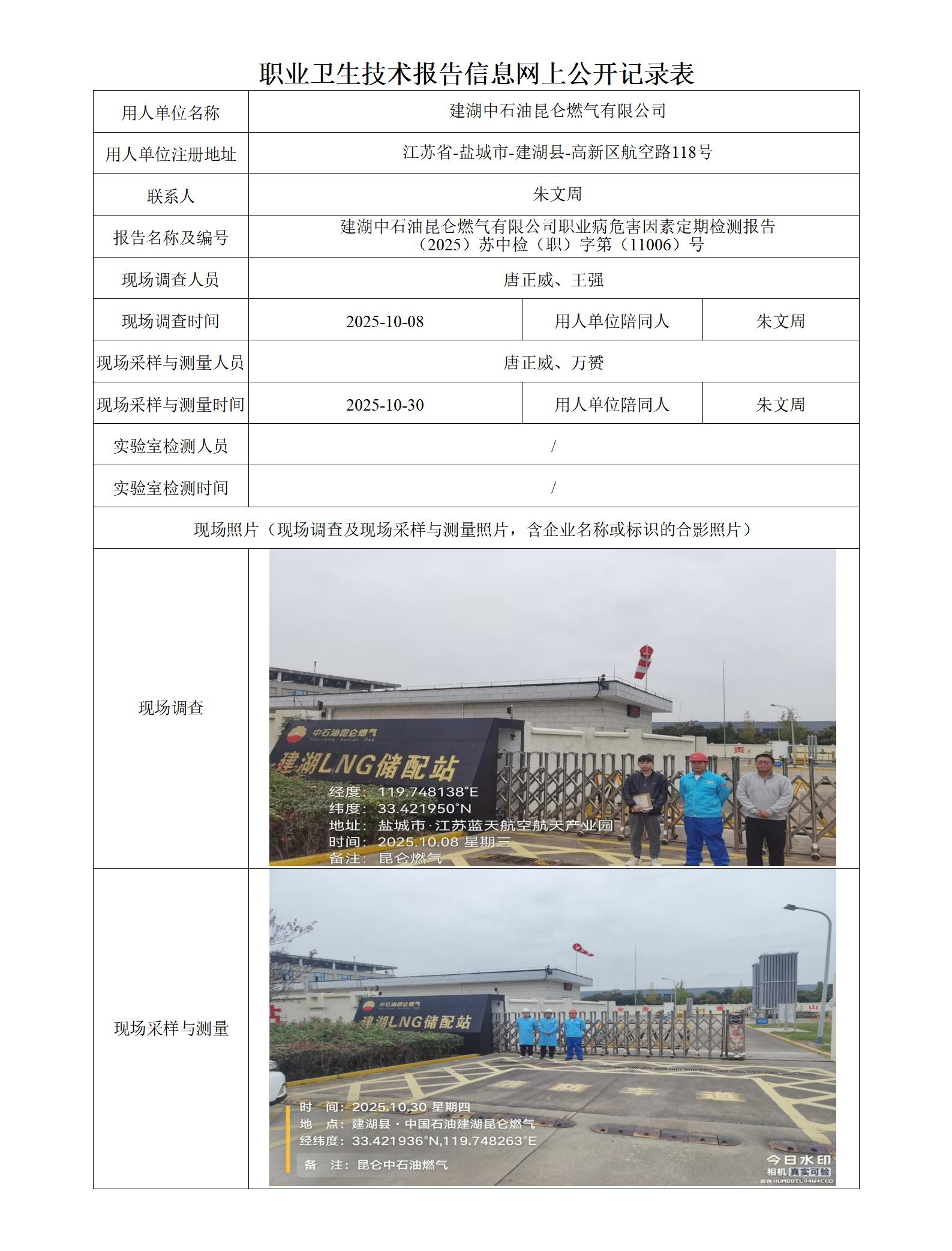 建湖中石油昆仑燃气有限公司职业卫生技术报告信息网上公开记录表